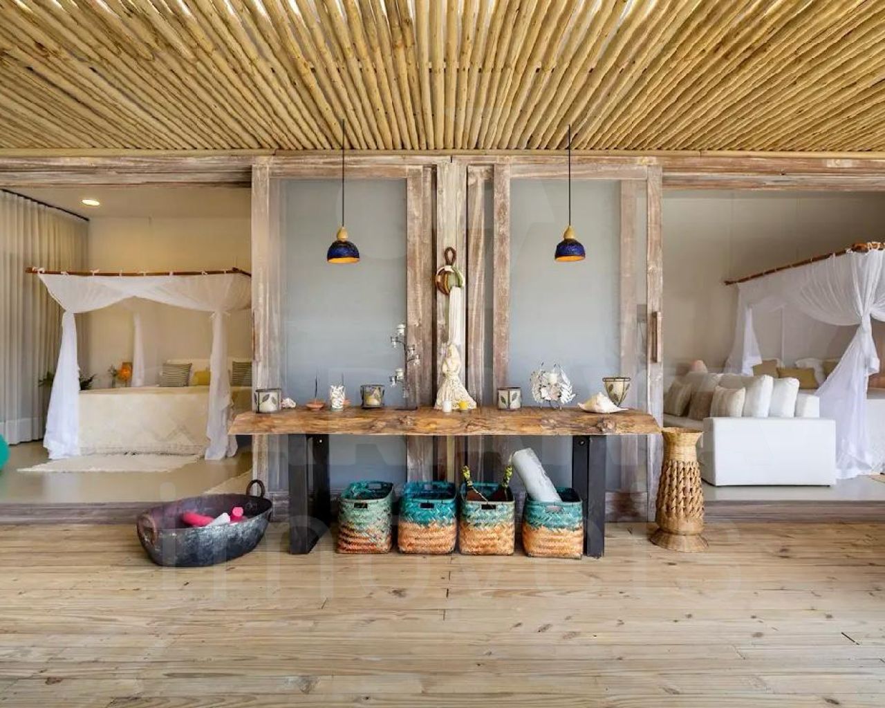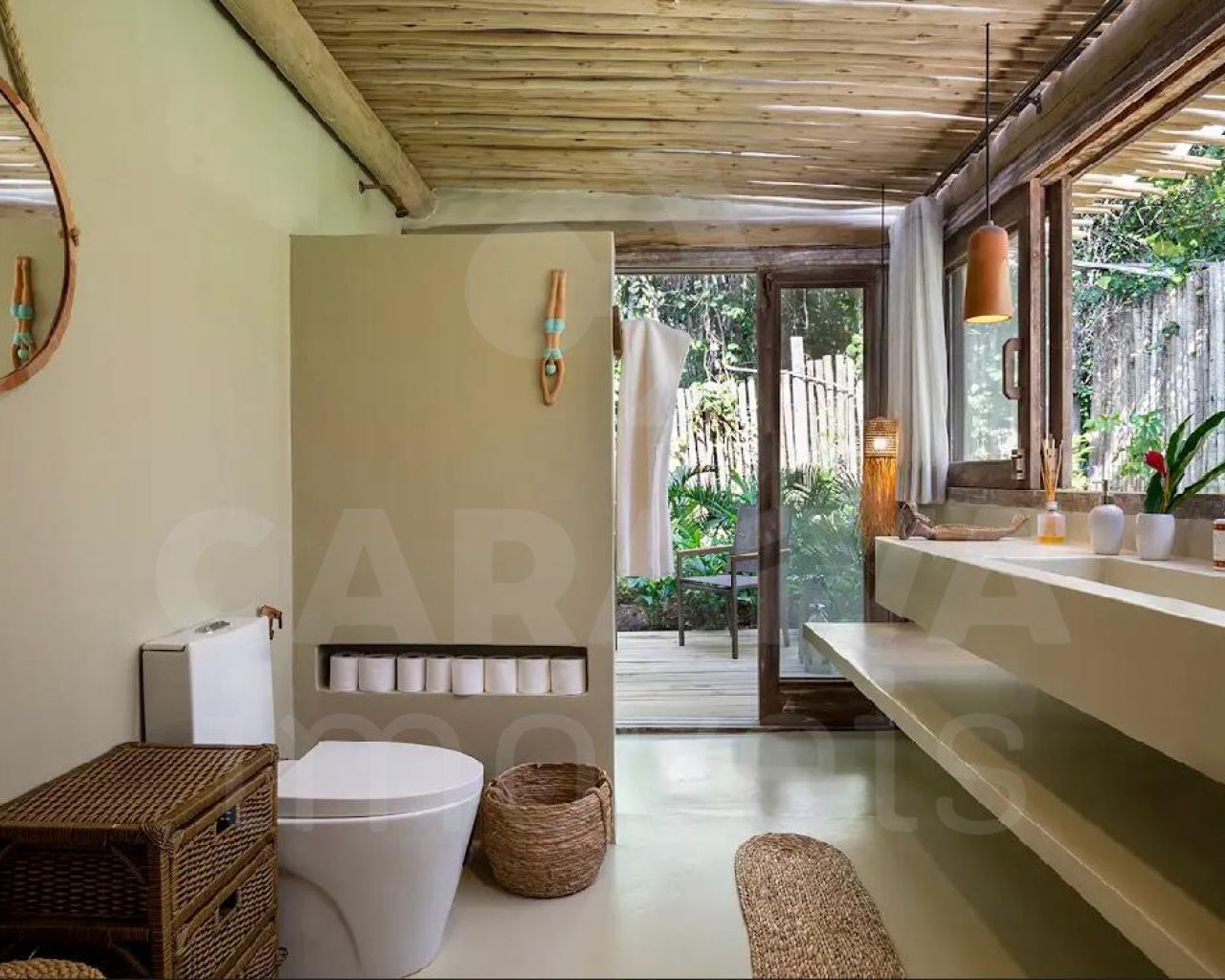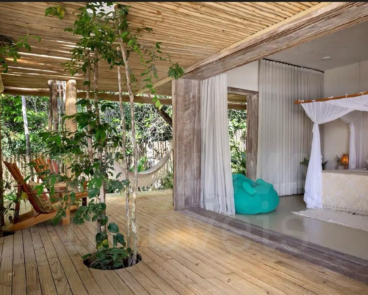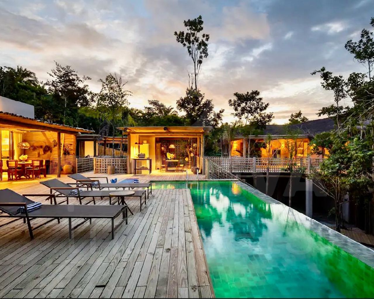 Todos os quartos possuem privacidade e são separados por distancia, deck e vegetação.