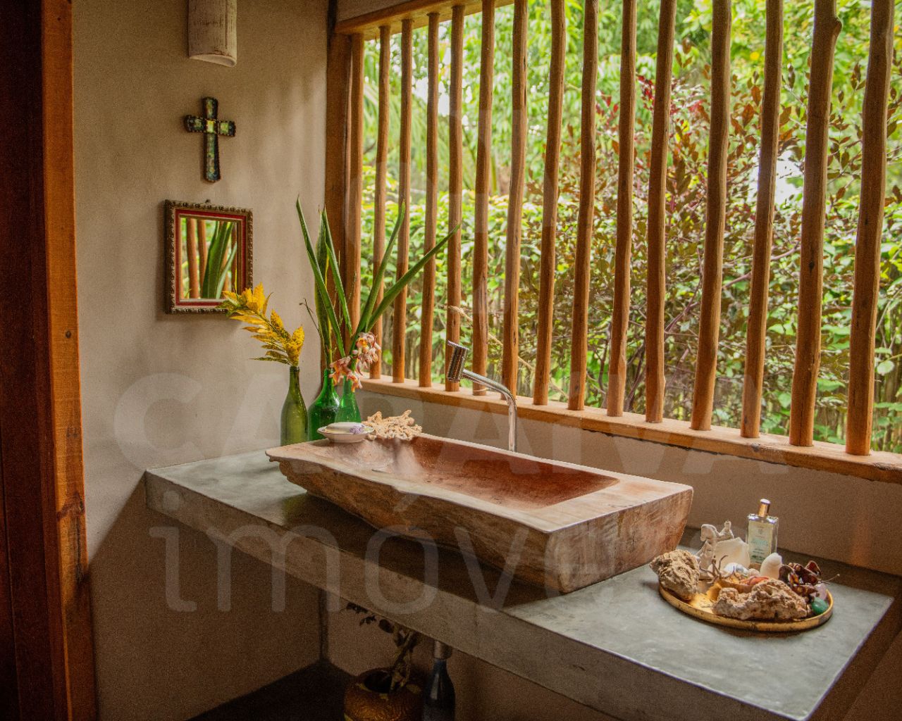 A Casa se localiza no Jambreiro, zona rural de Caraíva, onde você pode chegar de carro e de barco.